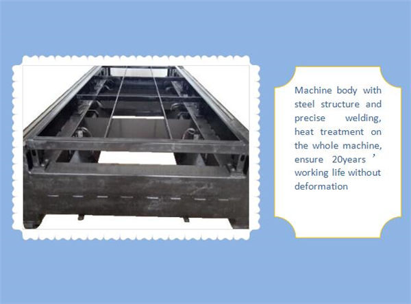 1. Trupi ynë i makinerisë me strukturë çeliku 8 mm, trajtimi i nxehtësisë 600,, saldimi i saktë, për t’u siguruar që 20 vjet të përdorni pa deformime.